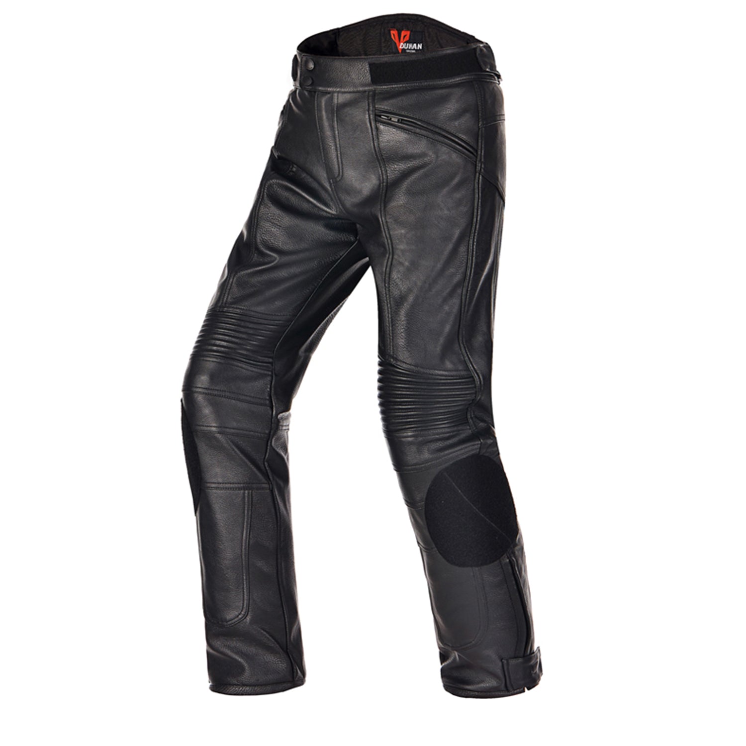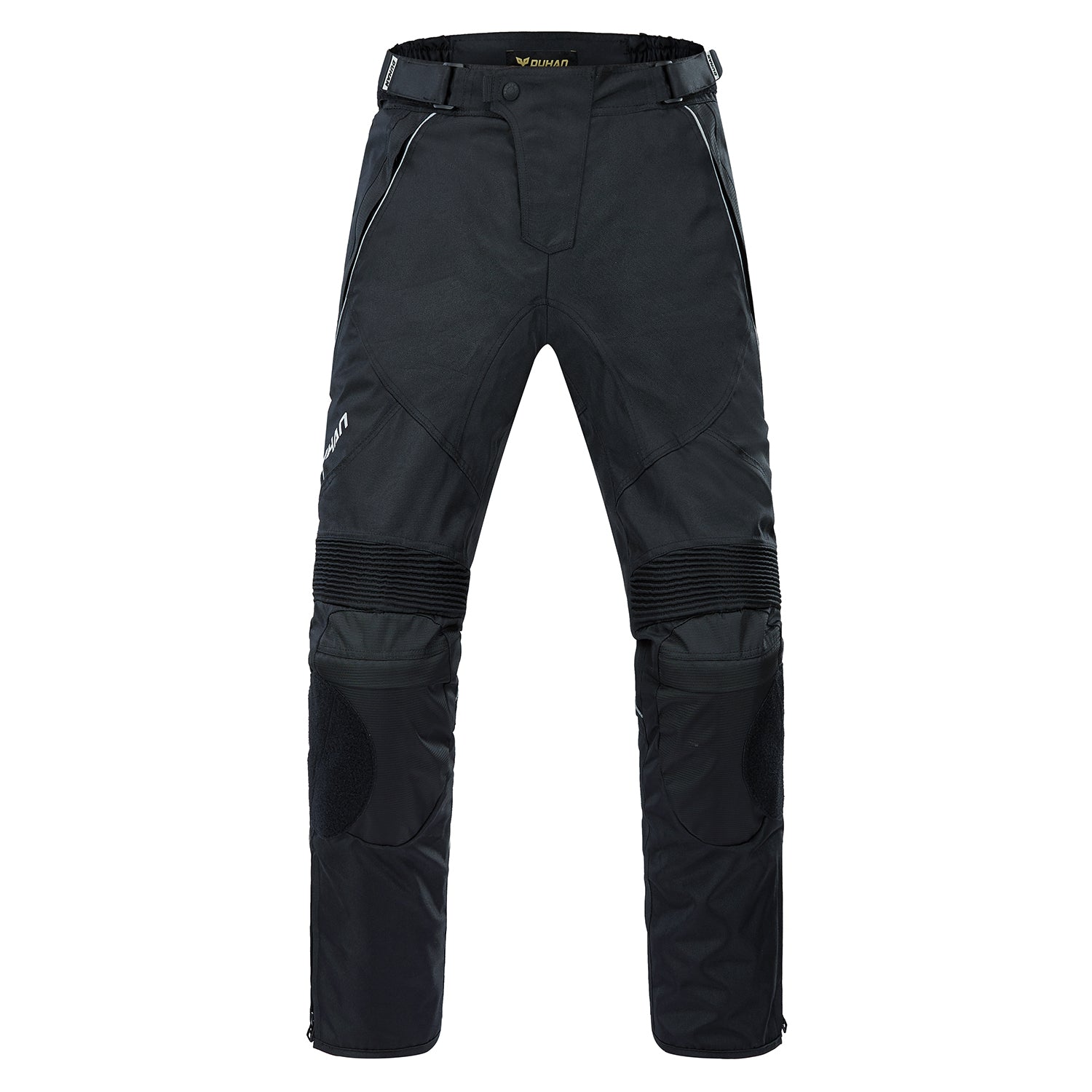 {"type":"root","children":[{"type":"paragraph","children":[{"type":"text","value":"Duhan DK-06 cycling pants are made of high-strength, durable, and abrasion-resistant 600D Oxford cloth, offering windproof and water-repellent properties. Their three-layer design provides excellent functionality and versatility, making them suitable for multiple seasons."}]},{"type":"paragraph","children":[{"type":"text","value":"A removable waterproof and warm inner liner helps riders withstand fluctuating temperatures, while a breathable mesh lining keeps riders cool and comfortable in hot weather. Large accordion pleats around the joints allow for unrestricted movement, and CE knee braces enhance protection. The waistband features a two-way adjustable Velcro closure for easy on and off. Double zippers and Velcro closures on the calves not only improve comfort when not riding but also make it easier to put on and take off cycling boots."}]}]}