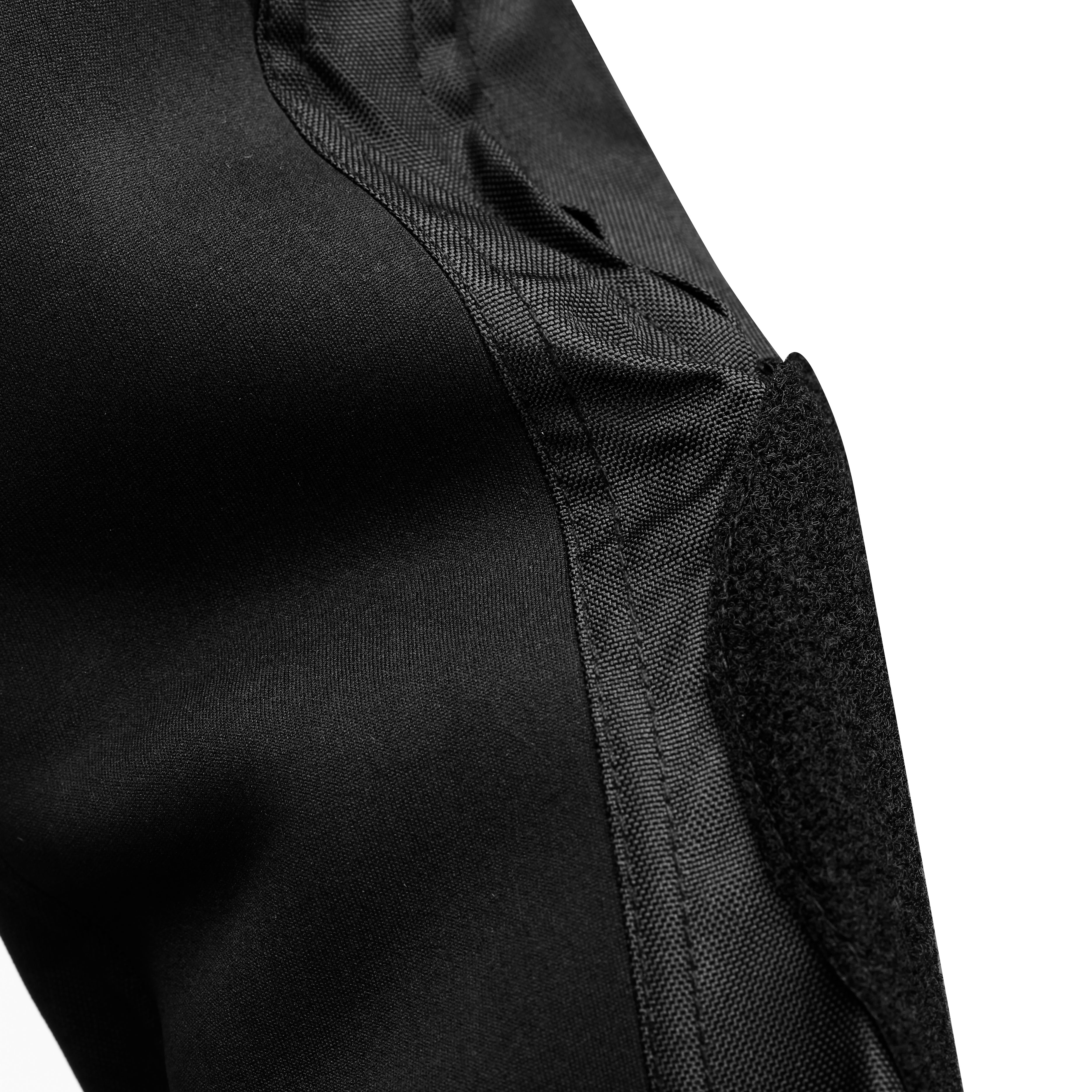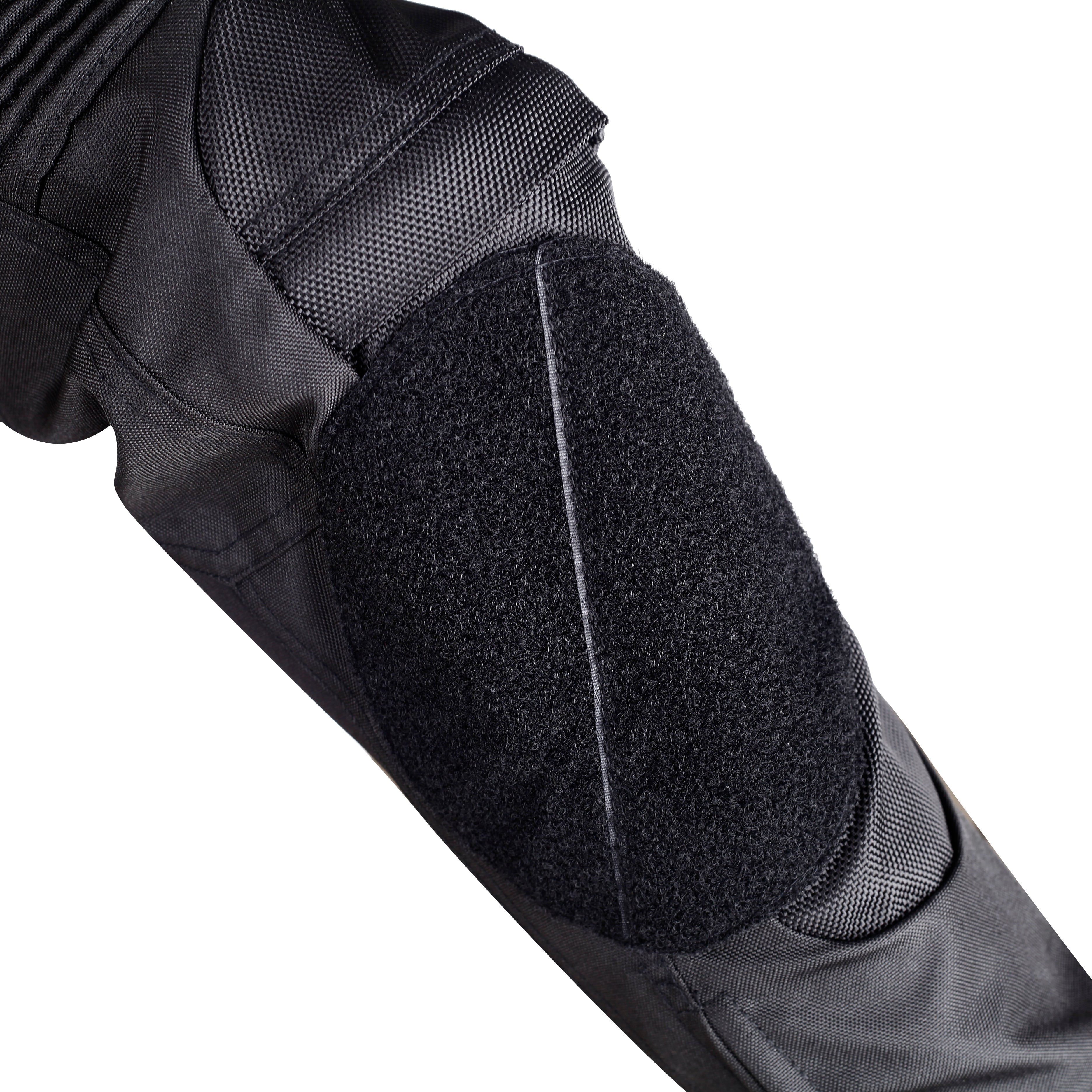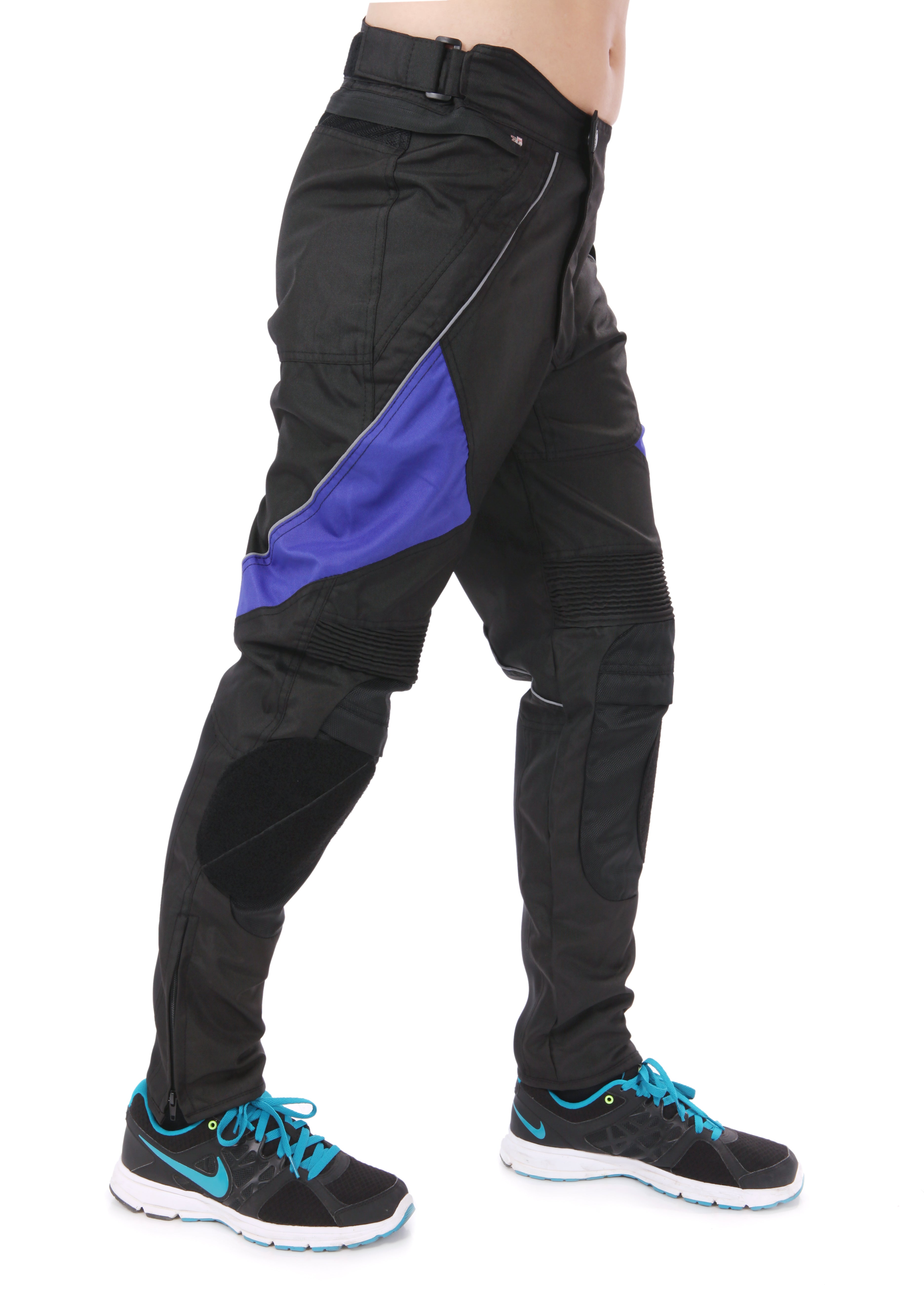 A removable waterproof and warm inner liner helps riders withstand fluctuating temperatures, while a breathable mesh lining keeps riders cool and comfortable in hot weather. Large accordion pleats around the joints allow for unrestricted movement, and CE knee braces enhance protection. The waistband features a two-way adjustable Velcro closure for easy on and off. Double zippers and Velcro closures on the calves not only improve comfort when not riding but also make it easier to put on and take off cycling boots.