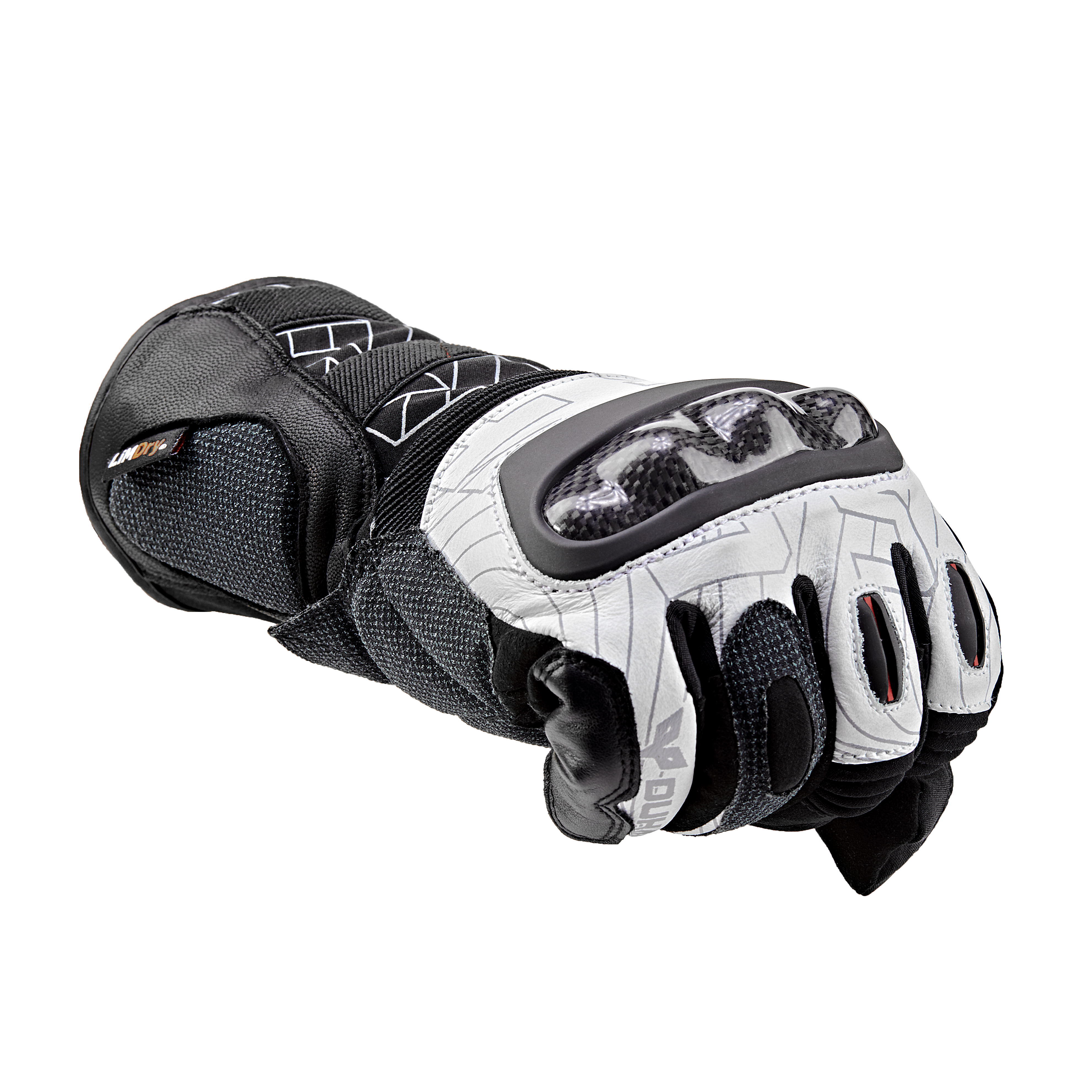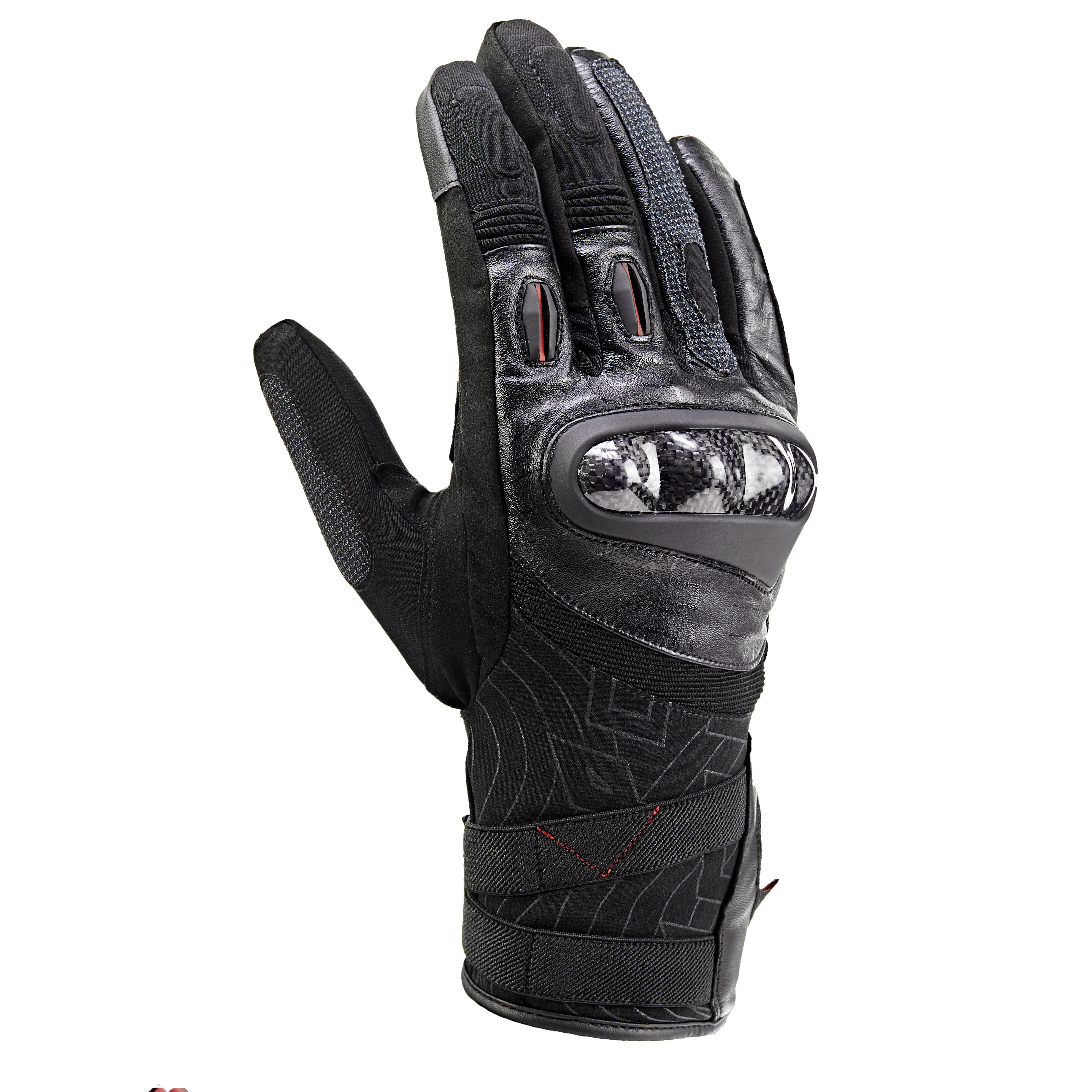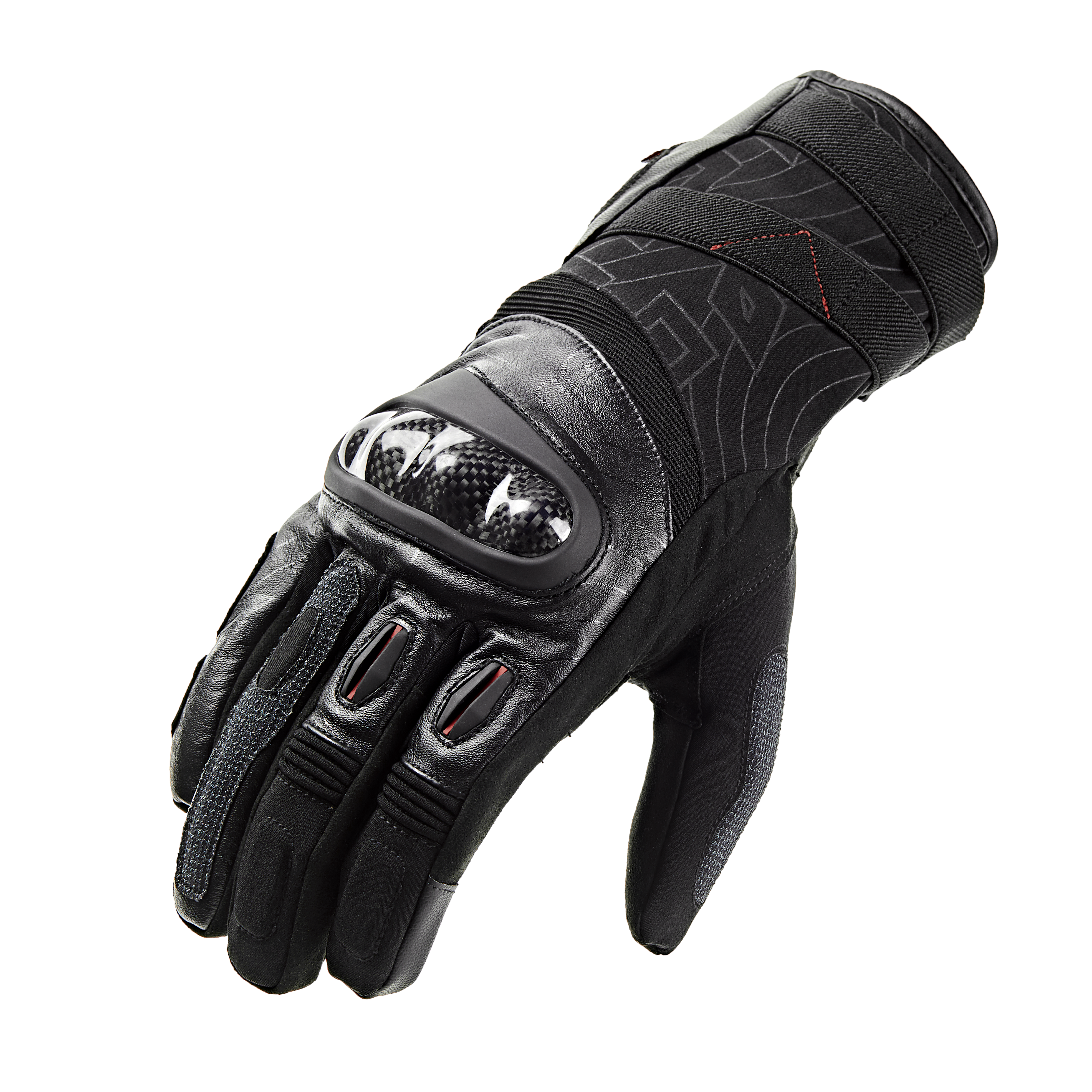 Thanks to Duhan LIMDry waterproof lining, W1 gloves effectively prevent rain penetration. The inner lining features Japanese MIYSPIFIBER heat-locking technology and an ergonomic design, ensuring excellent riding comfort and sensitivity even during extended wear. The TPU-wrapped carbon fiber in the knuckles also guarantees safety. Elastic design on the back and base of the fingers enhances flexibility and mobility. Furthermore, the index finger uses a conductive fabric compatible with touchscreens, allowing riders to use their phones without removing the gloves. These features collectively contribute to the superior characteristics of the W1 gloves.